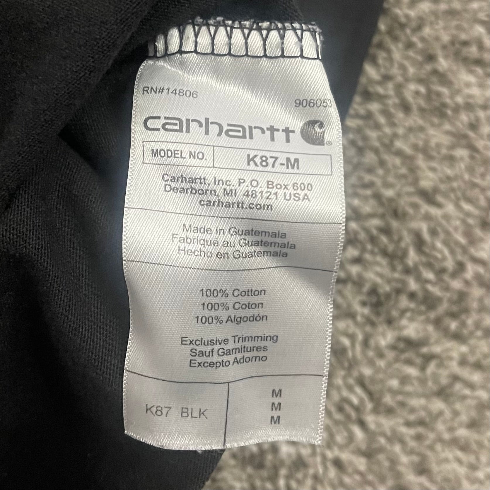 Carhartt K87 Loose Fit Heavyweight Pocket T-Shirt Black Men's Medium M Workwear