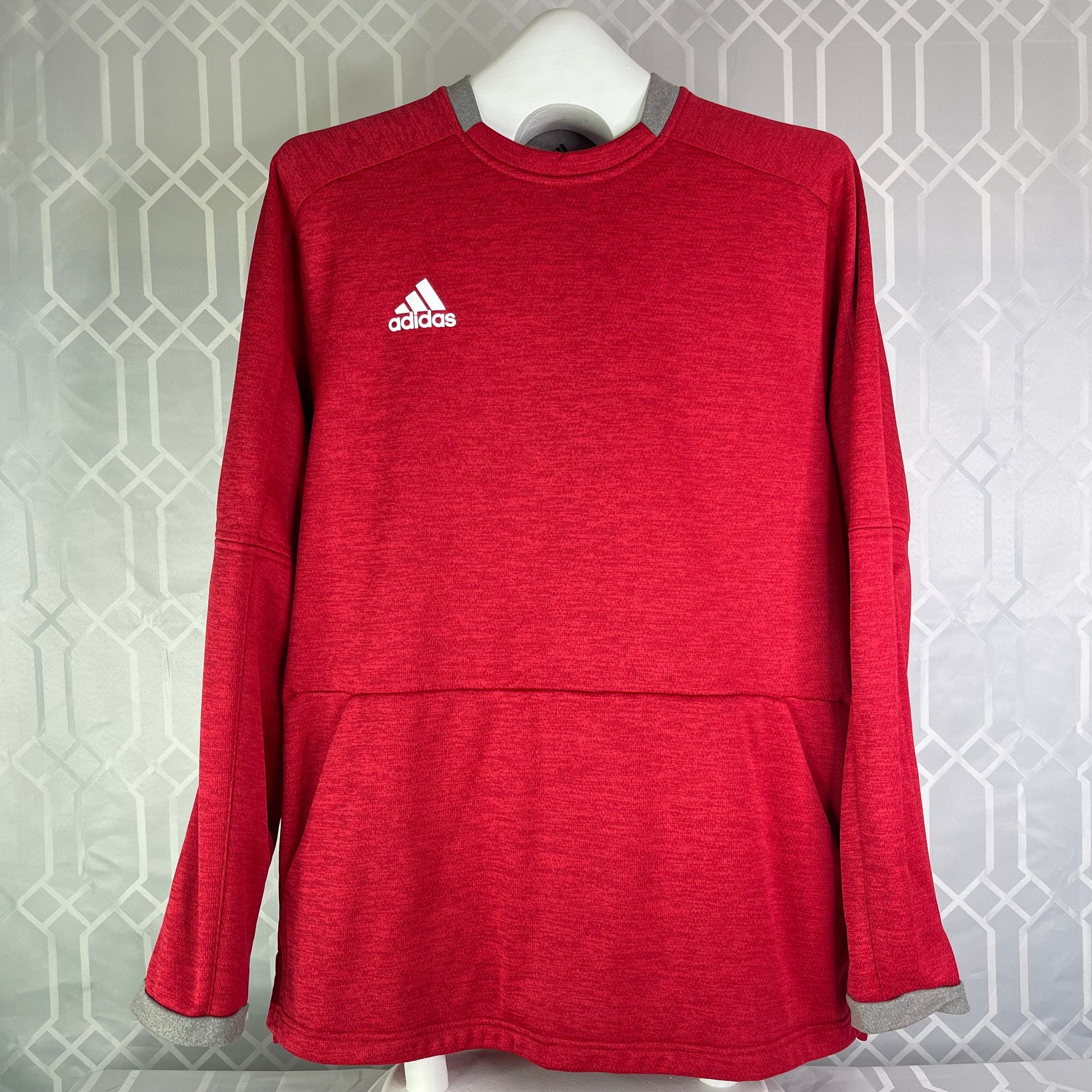 Adidas Men's Large L Baseball Dugout Fleece Pullover Sweatshirt Red Gray CY2057