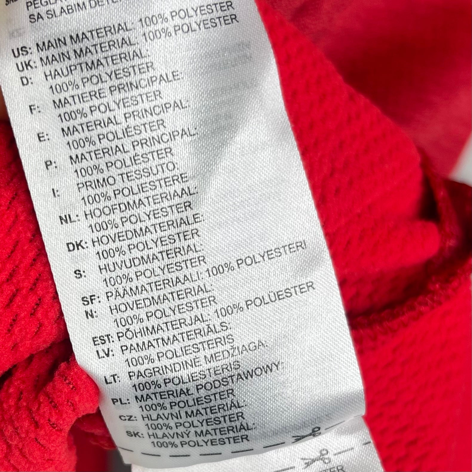 • Color: Heather Red with Solid Gray Accents (Collar, Cuffs, and Back Panel)
