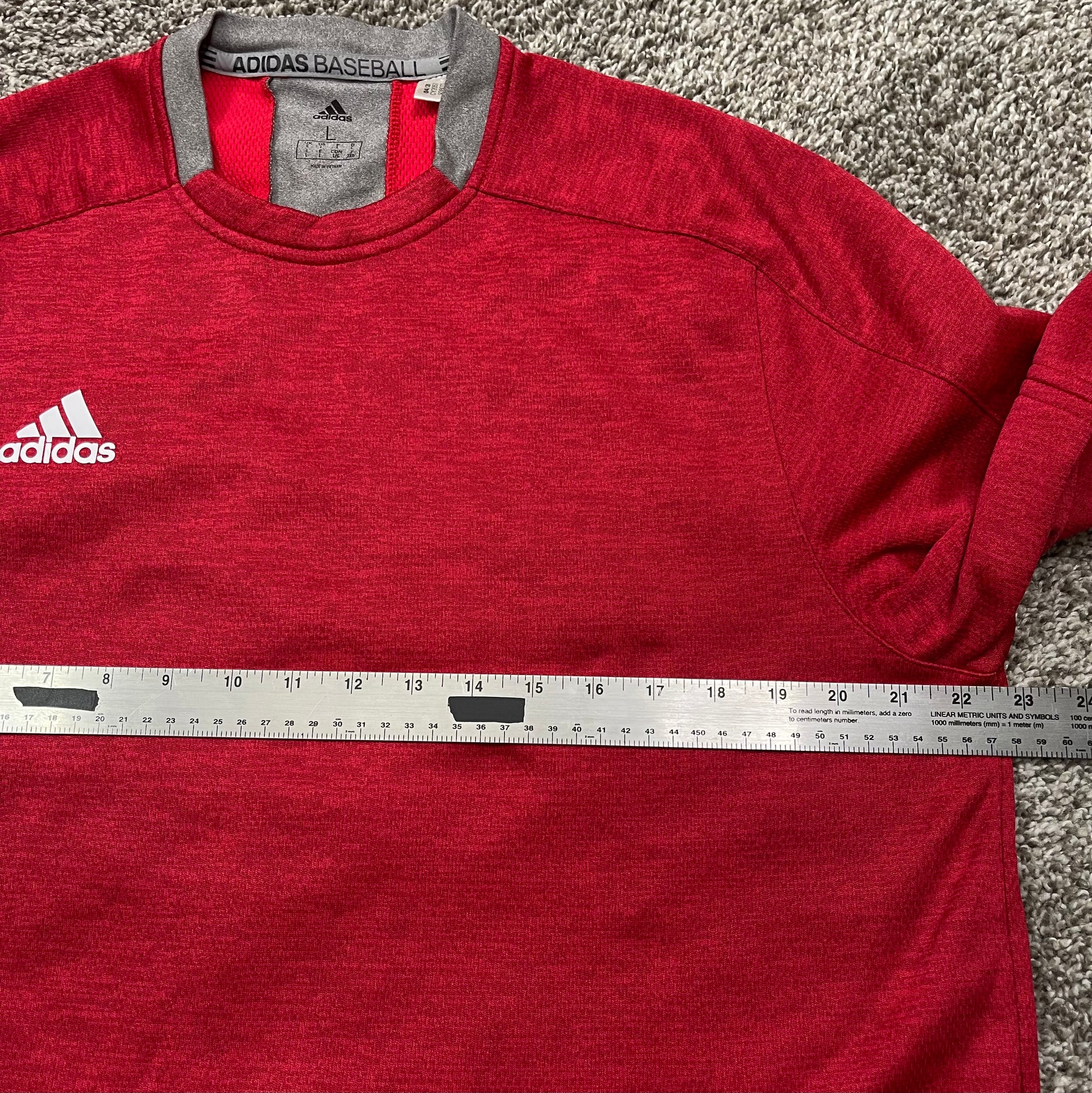 This is an authentic Adidas Baseball performance layering piece, often called a Dugout Pullover or Fleece Sweatshirt.